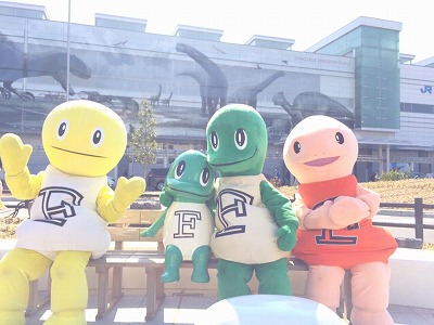 2016.04.01 福井駅前に恐竜復活! Tweet 福井駅前にフクイラプトル、フクイサウルス、フクイティタンが復活じゅらよ!! ラプトベンチ&サウタン、ティッチーもいるので、みんなにも写真を撮って世界に発信して欲しいじゅら♪