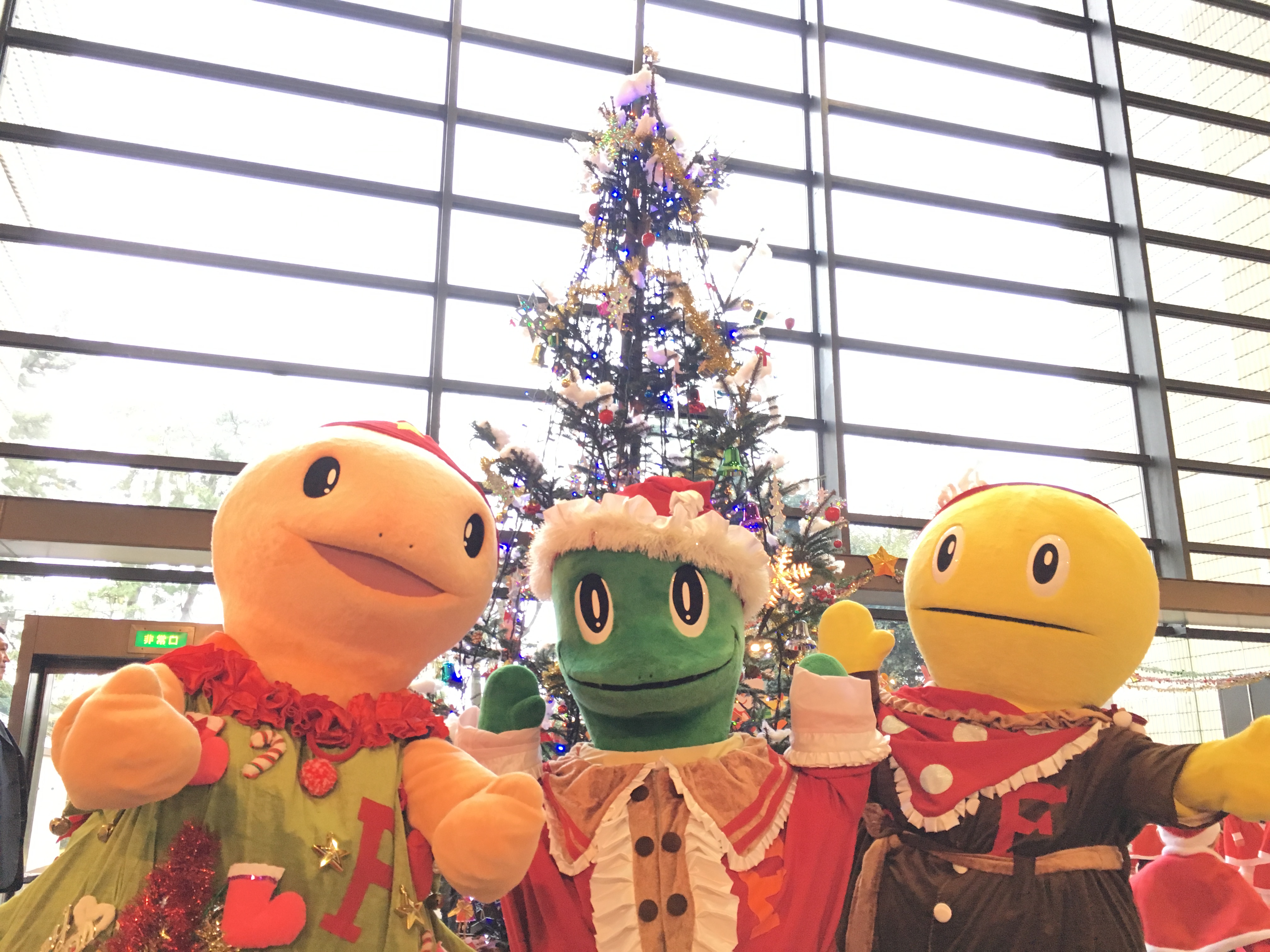 2016.12.09 県庁クリスマスツリー点灯式 Tweet ラプトじゅらヾ(≧∀≦*)ノ 今日は県庁のクリスマスツリー点灯式に参加したじゅら☆ ボクたちはクリスマス衣装で参加してきたじゅら♫ 3人とも衣装のモチーフがあるんだけど、みんな分かるじゅらか?!