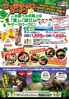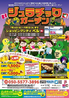 2015.07.13 屋外レストラン「ジュラチックガーデン」開店! Tweet 福井市の「ショッピングシティ・ベル」で屋外レストラン「ジュラチックガーデン」が開店します! お子様から大人まで、ご家族やお友達、仕事仲間と楽しもう! 福井県公式恐竜ブランド「ジュラチック」とベルがタイアップした楽しい屋上ガーデン! ここでしかないオリジナルメニューやジュラチックふあふあなどお楽しみが盛りだくさん♪ ぜひみんなで遊びに来てね~♪