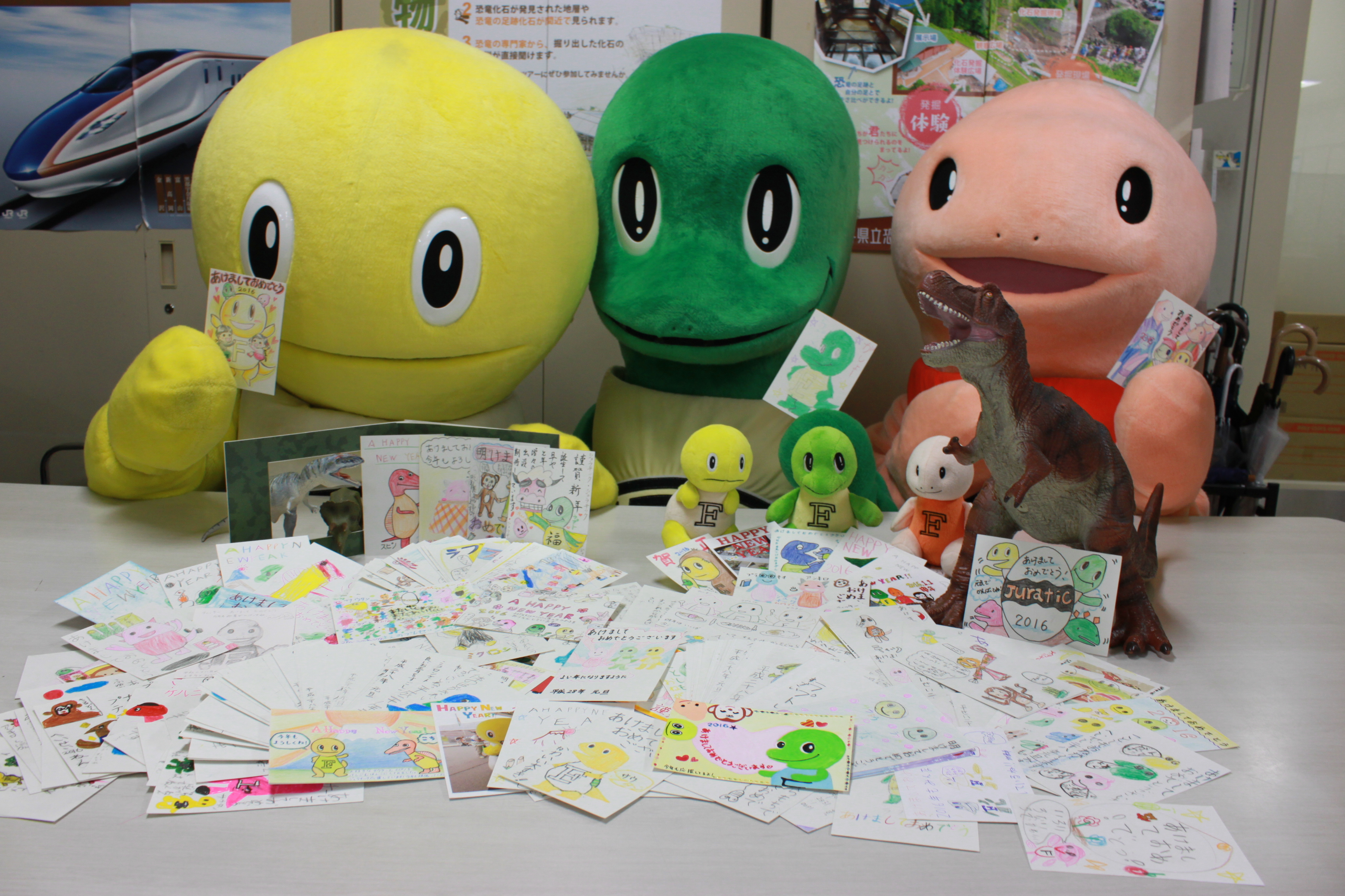 2016.12.14 今年もらった年賀状を大公開! Tweet ラプトじゅらヾ(≧∀≦*)ノ もうみんな、年賀状は書いたじゅらか?! 今日は、今年もらった年賀状を大公開じゅら! 250枚も届いて嬉しかったじゅら~♡ 来年もみんなからの年賀状待ってるじゅらよ~~!! 【送り先】 〒910-8580 福井県福井市大手3丁目17-1 福井県ブランド営業課内「ジュラチック王国出張所」まで TEL 0776-20-0227