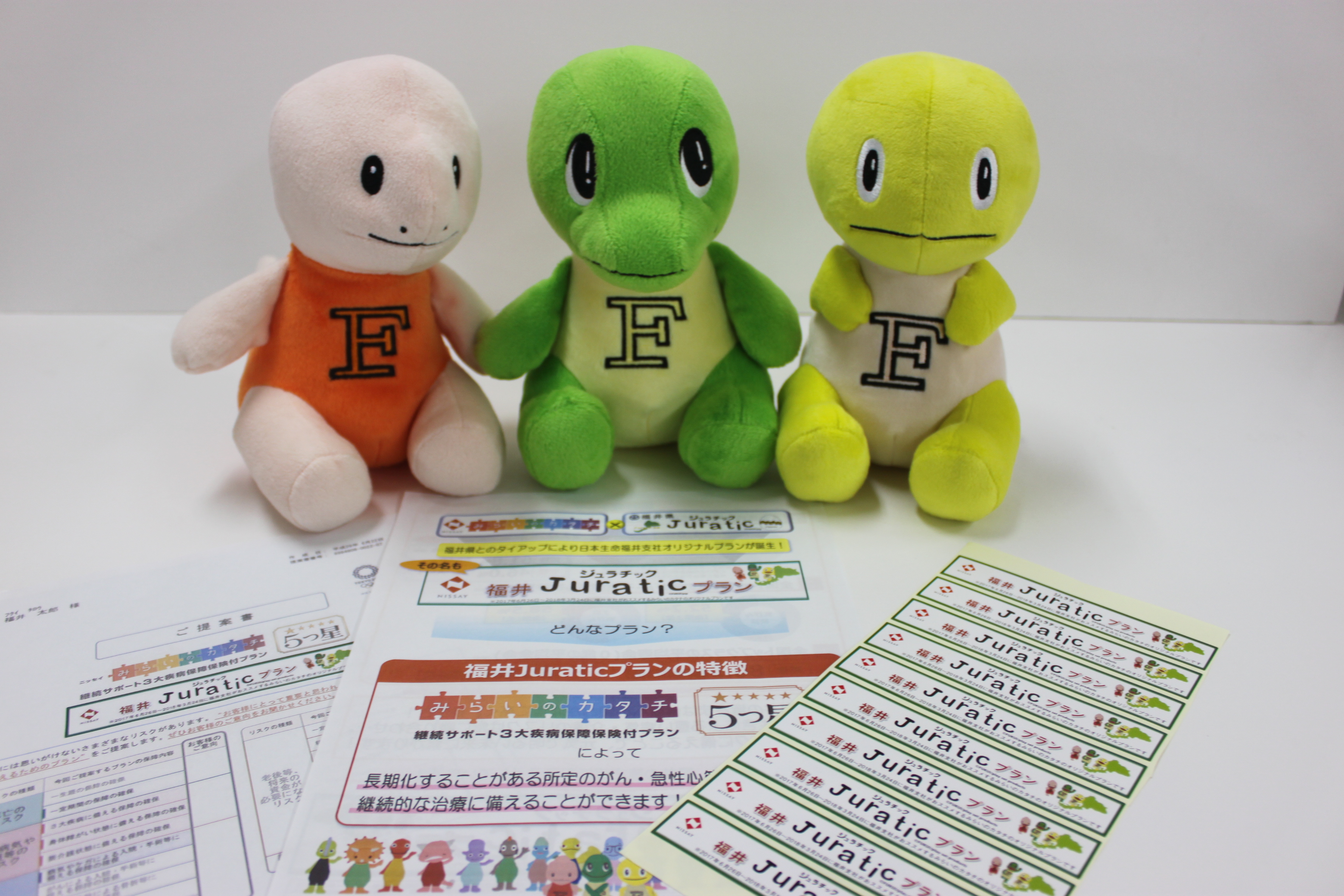 2017.07.05 日本生命「福井Juraticプラン」発売開始! Tweet ラプトじゅら♫ 日本生命保険相互会社さんが保険商品「福井Juraticプラン」を発売開始したじゅら!! がん、急性心筋梗塞、脳卒中に重点的に備える福井県民にオススメのプランじゅらよ(๑•̀ㅂ•́)و✧ これから、日本生命さんのチラシ等にはジュラチックのデザインが使われるので、是非チェックして欲しいじゅら!!