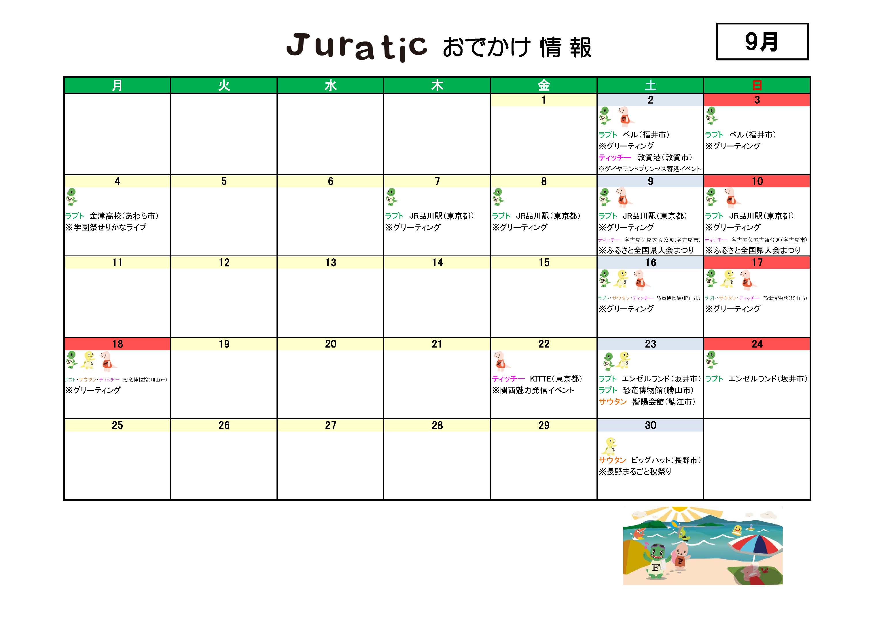 ★ラプトくんたちの9月のお出かけ情報★(9月21日更新)