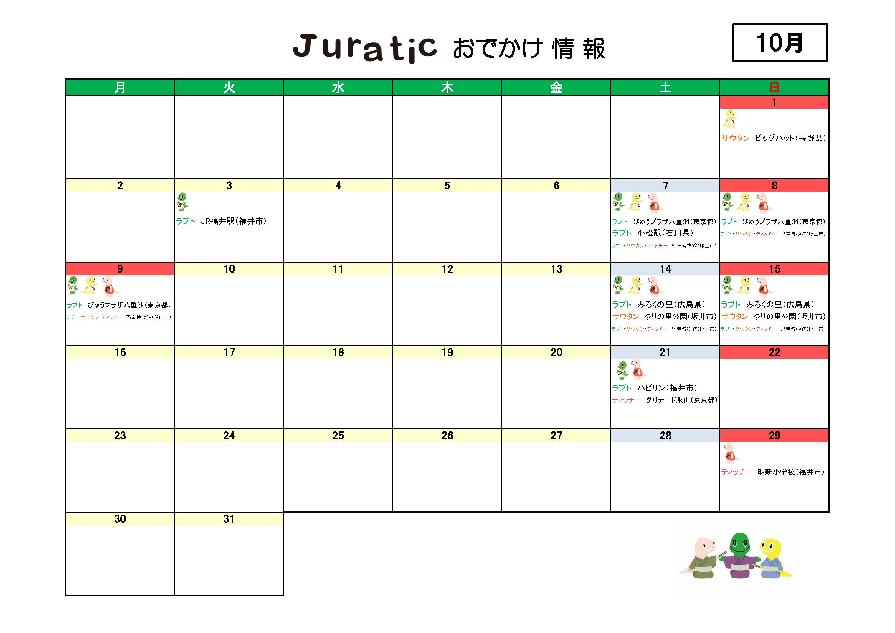 ★ラプトくんたちの10月のお出かけ情報★(10月5日更新)