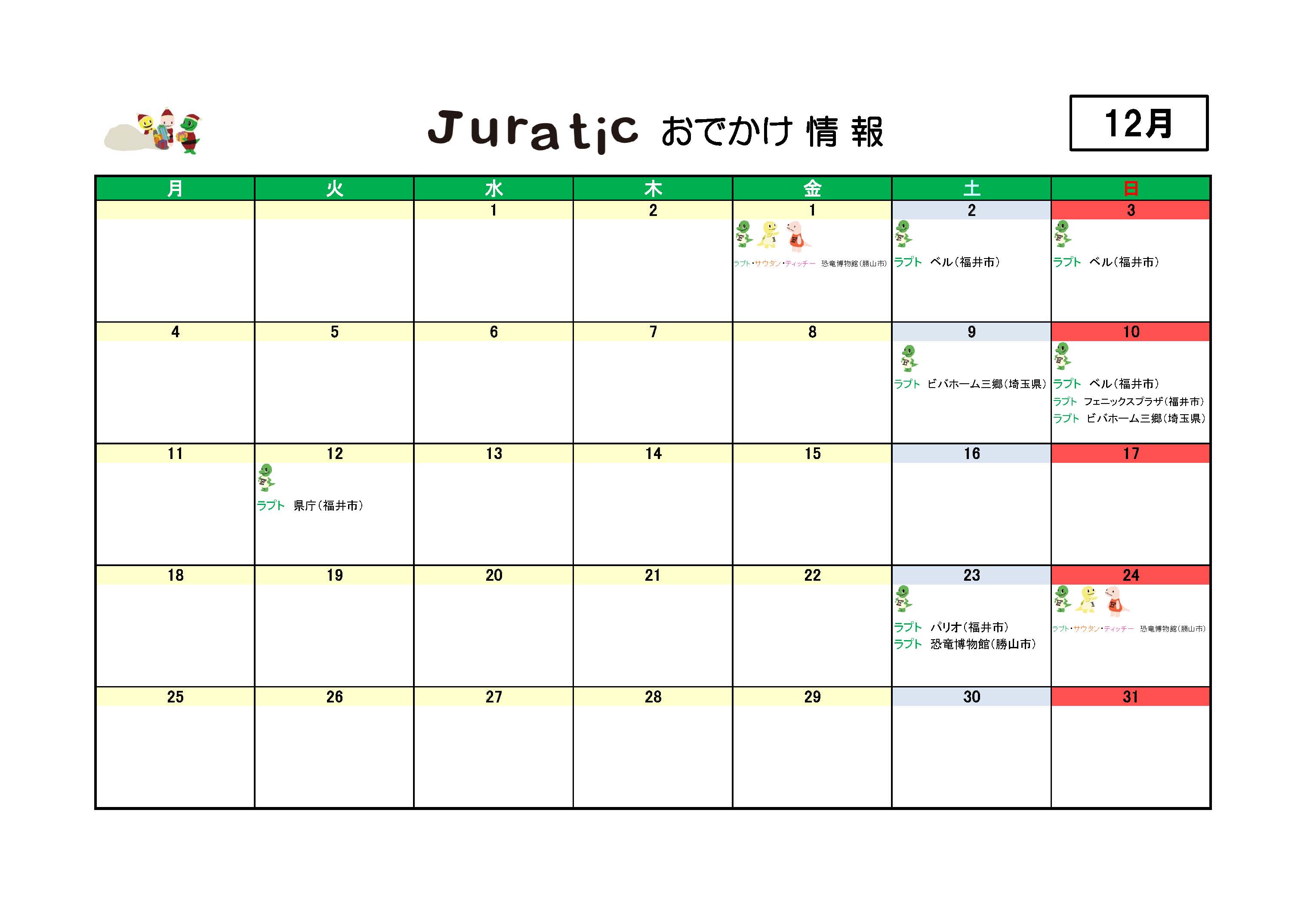 ★ラプトくんたちの12月のお出かけ情報★(12月6日更新)