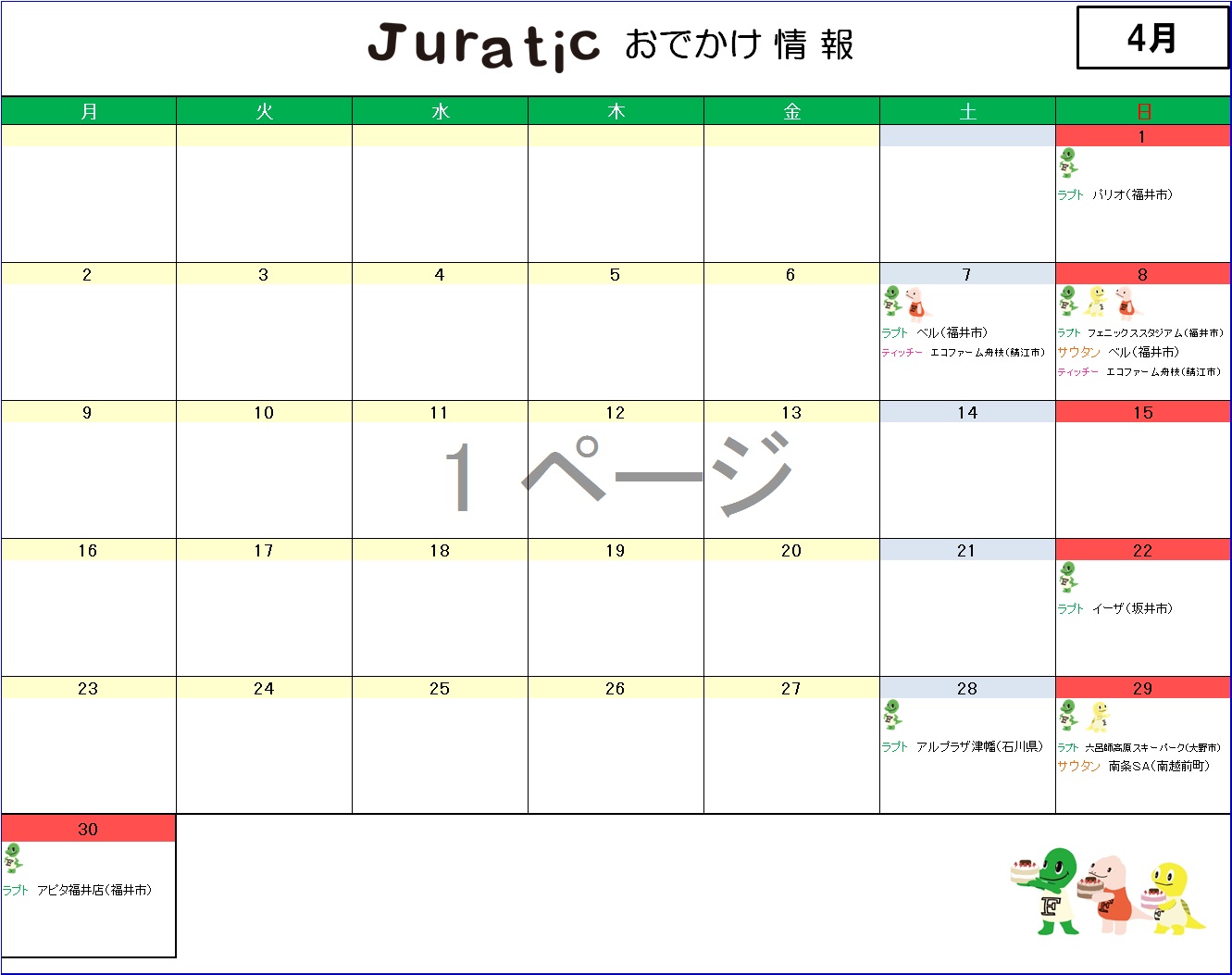 ★ラプトくんたちの4月のお出かけ情報★(4月20日更新)