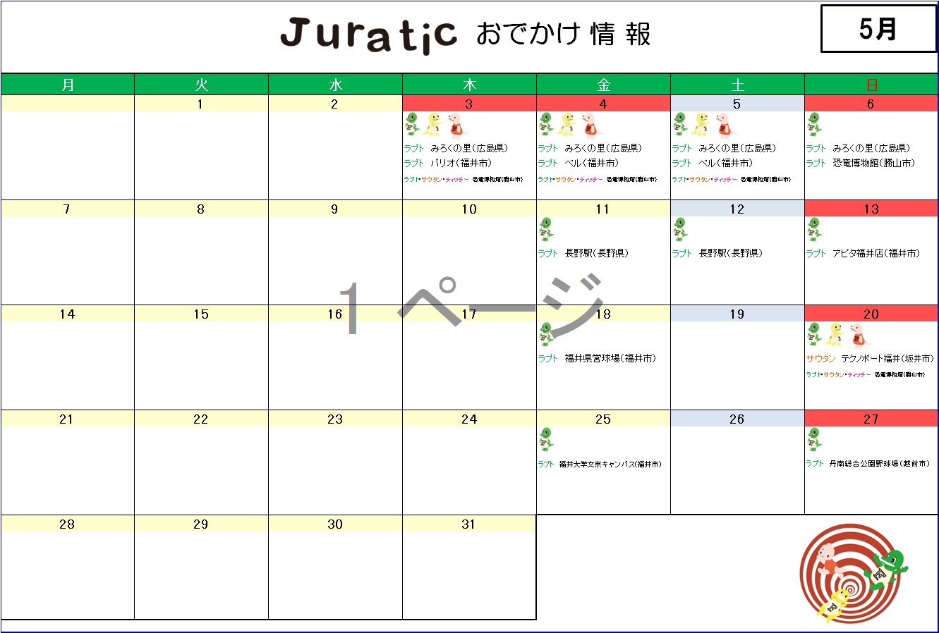 ★ラプトくんたちの5月のお出かけ情報★(5月24日更新)