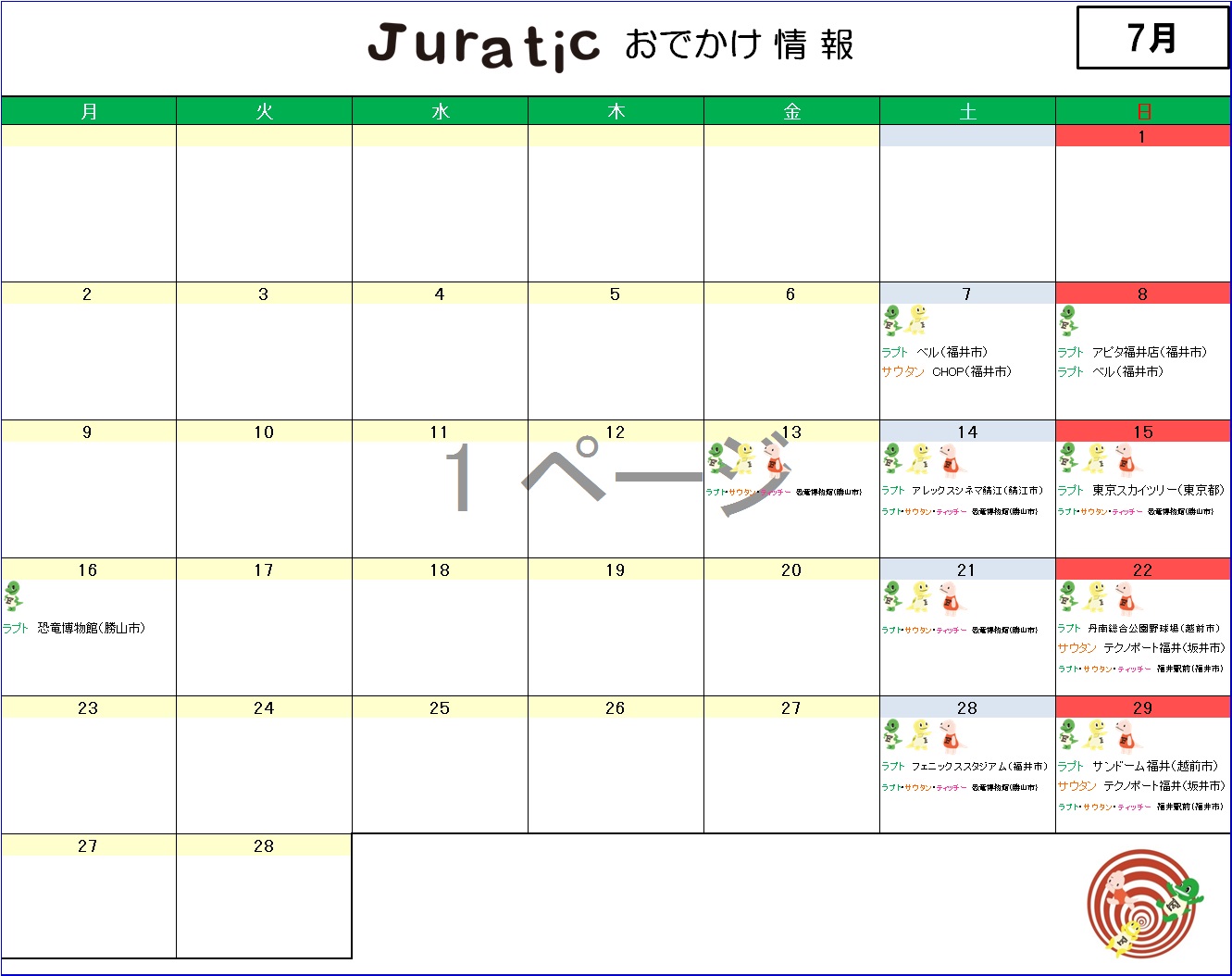 ★ラプトくんたちの7月のお出かけ情報★(7月26日更新)