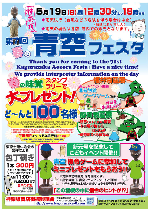 5月19日(日)、神楽坂で青空フェスタが開催されるじゅら(^◇^)